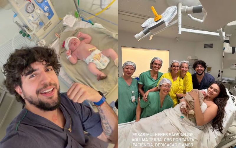 07 janO forrozeiro compartilhou registros do nascimento da primeira filha com a atriz e agradeceu à equipe médica pelo cuidado e dedicação durante a chegada da bebê