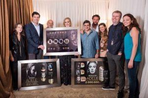Em turnê pela América do Norte, a cantora inglesa Adele recebeu representantes da Sony Music nos bastidores de um show e recebeu uma placa comemorativa pelas duas milhões de cópias vendidas no Brasil. O número engloba seus três álbuns – “19”, “21” e “25” – e o DVD “Live at the Albert Hall”.