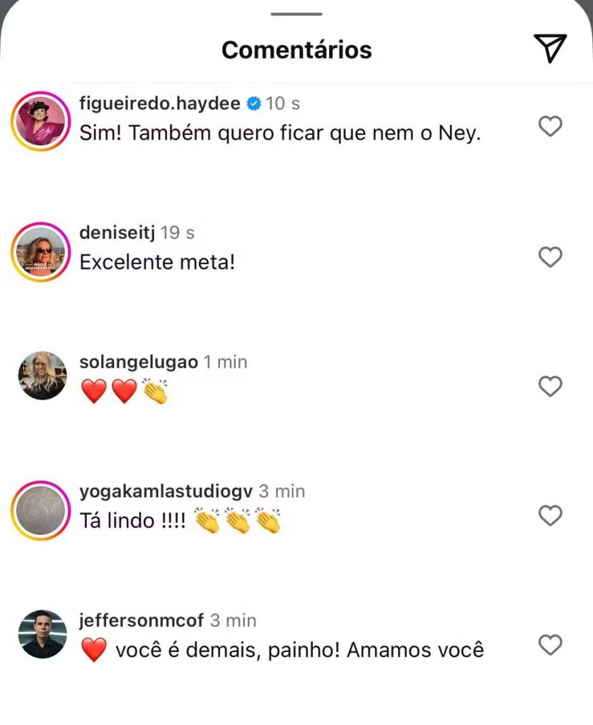 Ele recebeu muitos elogios dos fãs: “Excelente meta”, “Tá lindo”, “Vocês dois estão ótimos”.