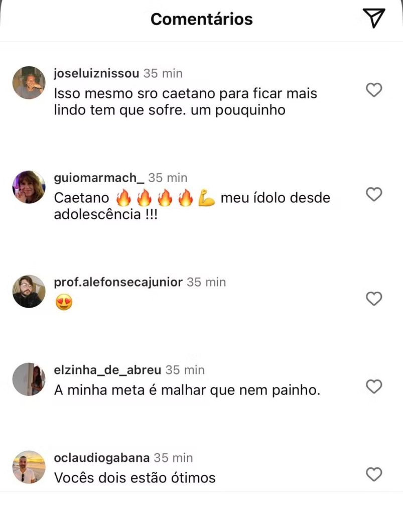 “Como bem disse @paulalavigne: A meta é estar tão bem quanto @neymatogrosso ! 🏋🏽”.Caetano tem 83 anos e Ney 84.