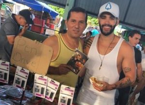 Gusttavo Lima publicou uma foto em seu Instagram na qual aparece ao lado de um trabalhador informal que vende cópias de seu mais recente trabalho, Buteco do Gusttavo Lima, Vol. 2.
