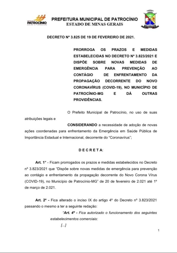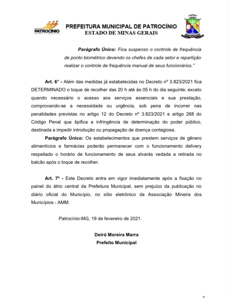 Na manhã desta sexta-feira (19), durante reunião do Comitê de Enfrentamento à Covid-19 na cidade de Patrocínio, houve uma nova análise do cenário da pandemia no município, o que acarretou a publicação de um novo decreto com medidas ainda mais rígidas para prevenção do contágio da doença.
