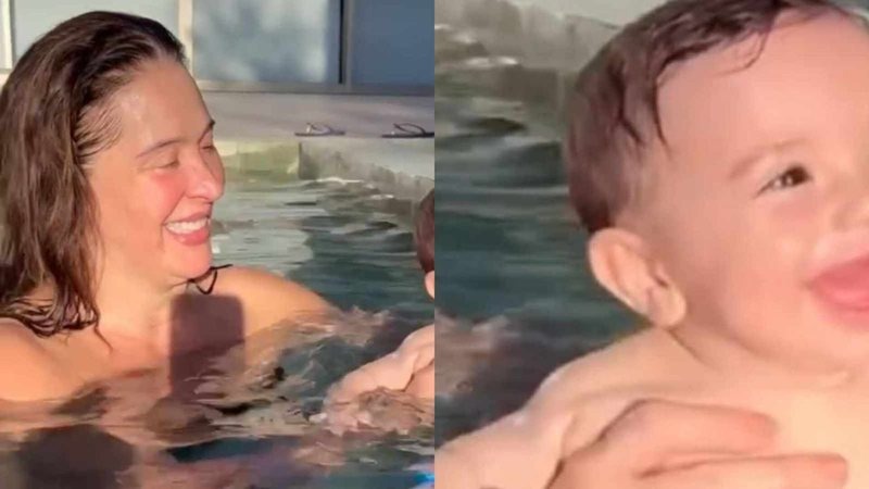 30 outEm vídeo, Claudia Raia mostra Luca, de oito meses, querendo nadar e impressiona com habilidade do bebê